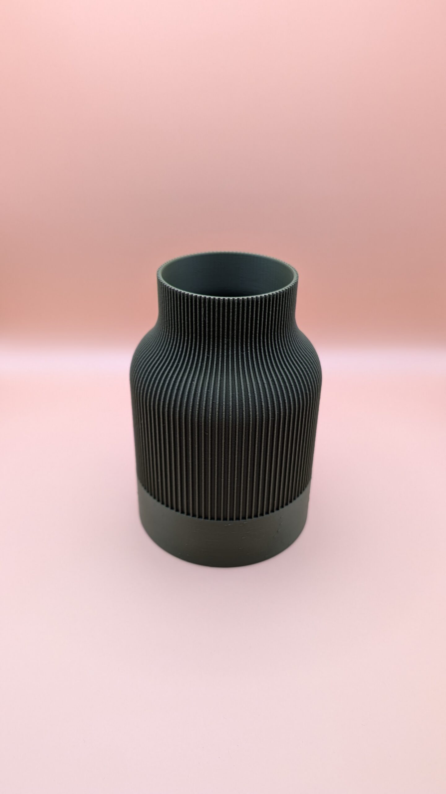 The Urban Ribbed Vase brings a clean, architectural look to any modern space. Its bold vertical ribbing catches the light beautifully, creating subtle shadows that emphasize the silhouette from every angle. It has a precise, tactile texture that invites you to reach out and touch.